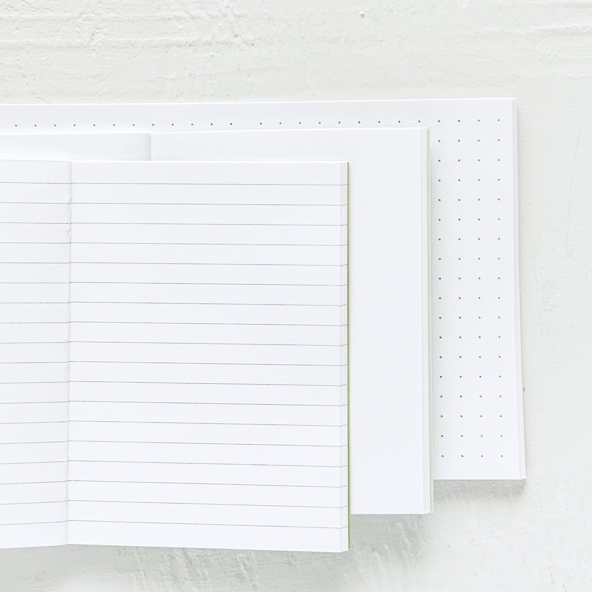 set of 3 pocket journals with a choice of lined, dot grid or blank pages. perfect for on-the-go lists, inspiration, appointments and notes.