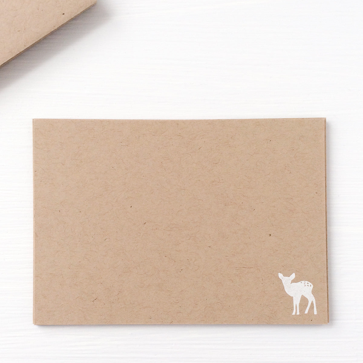simple set of kraft flat notecards with a deer hot foil stamped on them. these cards are great for sending for thank yous, encouragement and celebration.