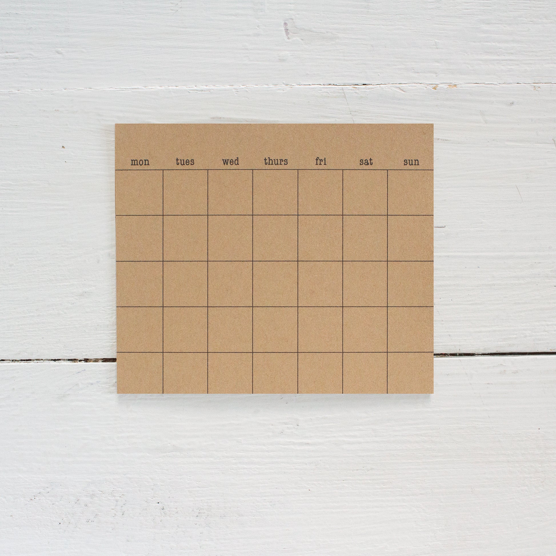 easily work on projects, track goals, plan events or keep a simple journal with these kraft sticker calendars. the calendars are left blank so the dates can be filled in as needed. room on the top for writing the month and project names. room for 5 weeks of planning.