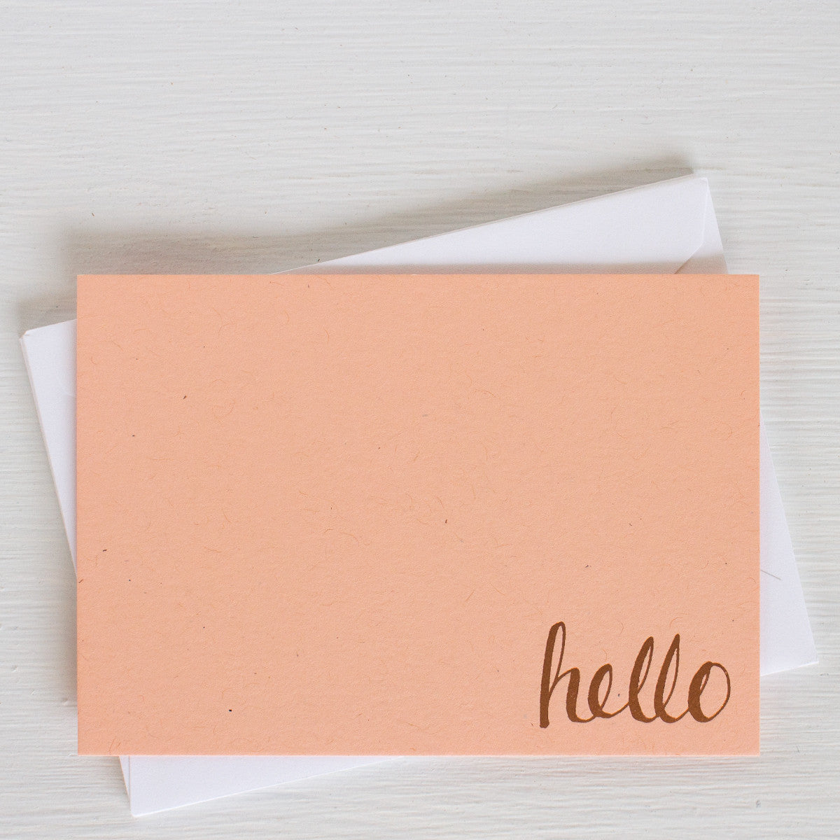simple set of flat notecards with handwritten HELLO hot foil stamped in gold. these cards are great for sending for thank yous, encouragement and celebration.