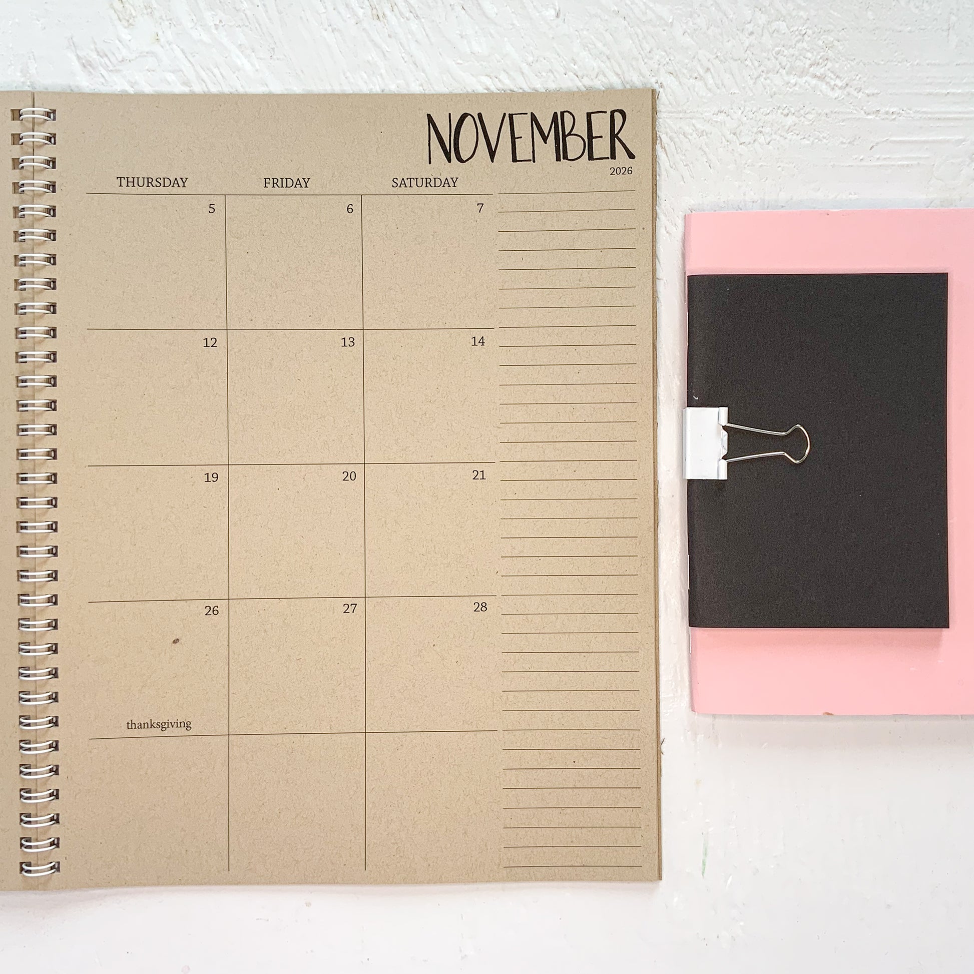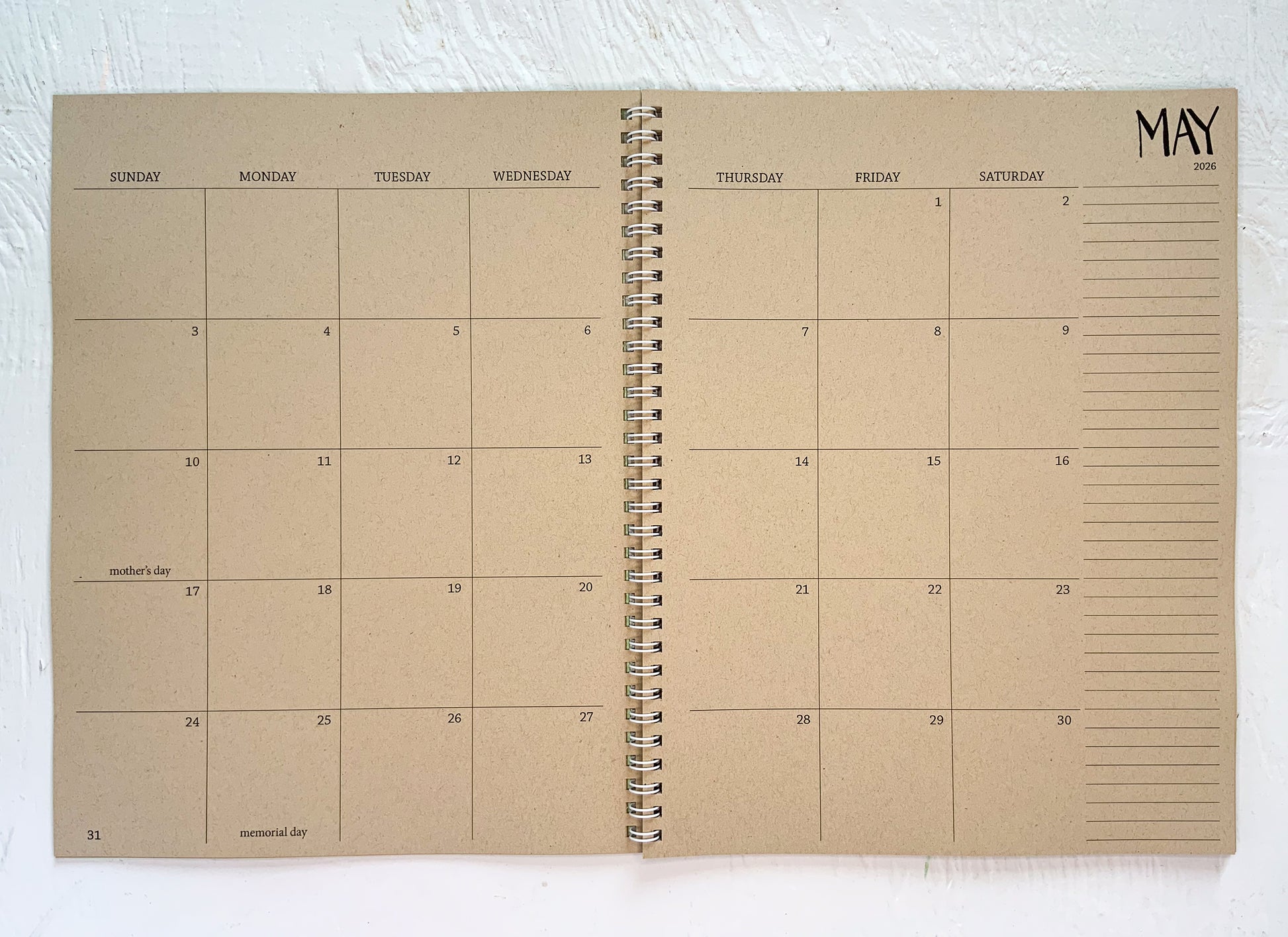 SAMPLE PLANNER - 2026 large kraft monthly spiral planner | pages in between months