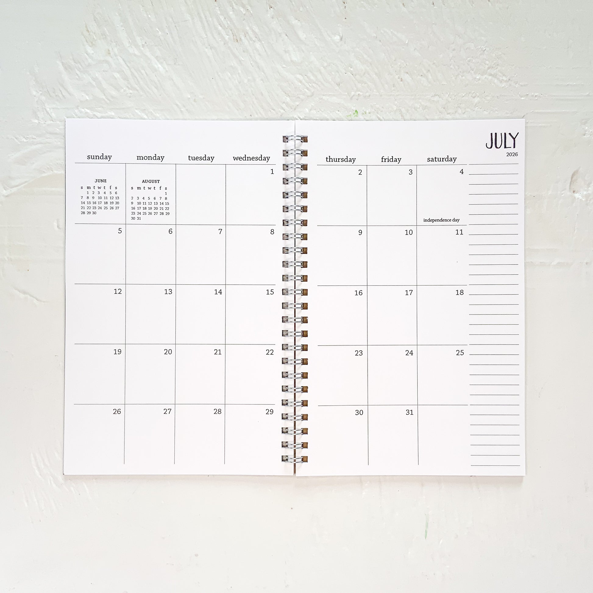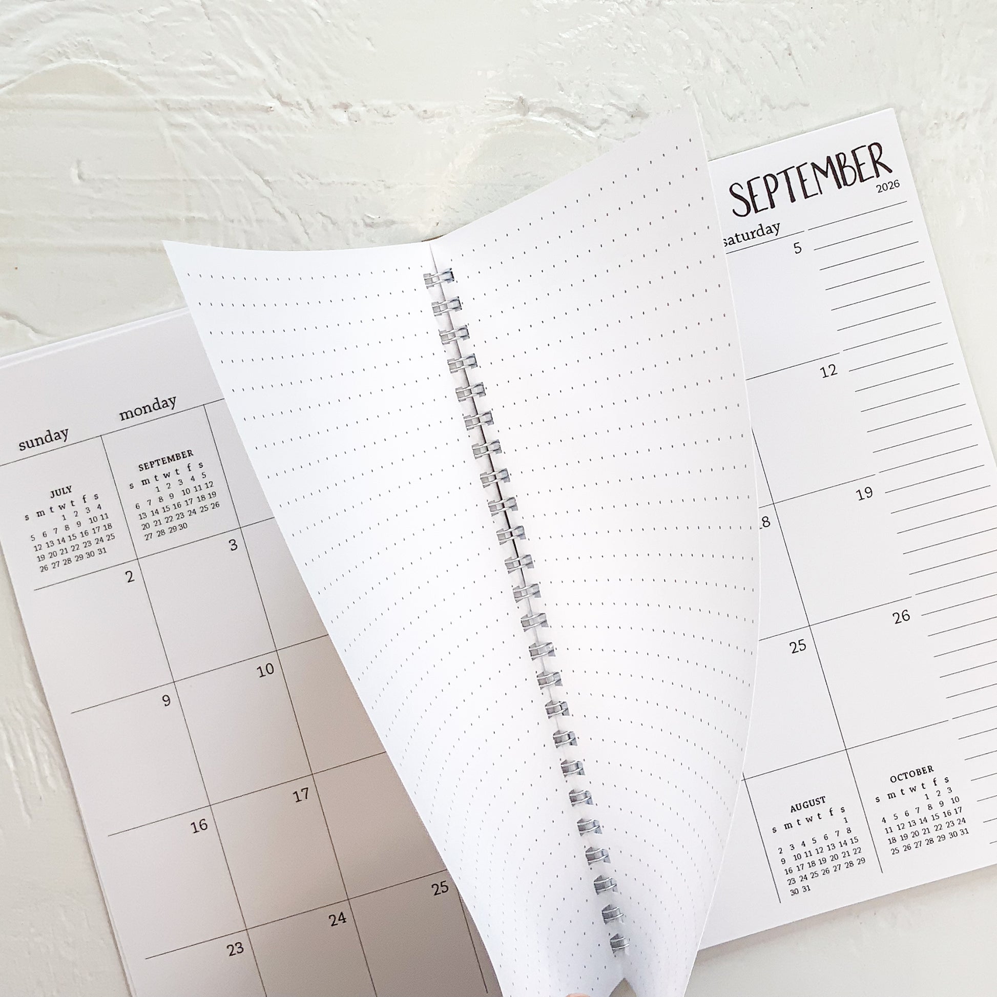 SAMPLE PLANNER - 2026 small monthly spiral planner | pages between months