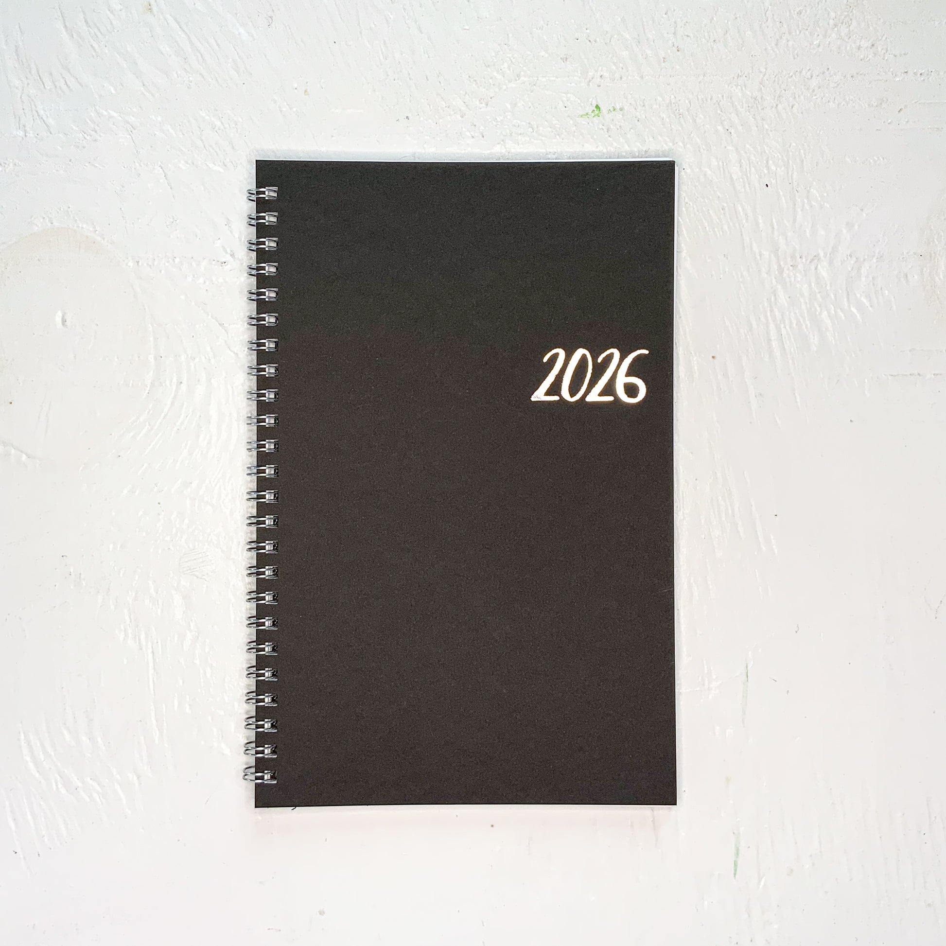 cover is black cardstock and "2026" is hand foil stamped with "2026” in silver.