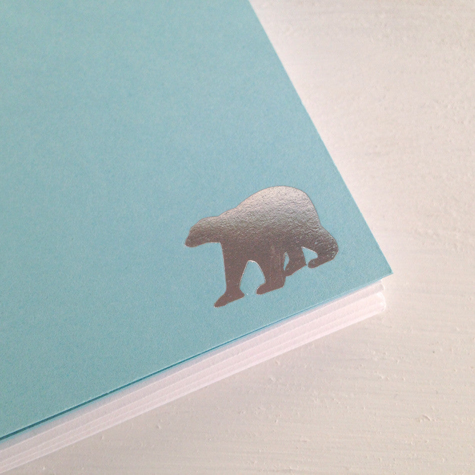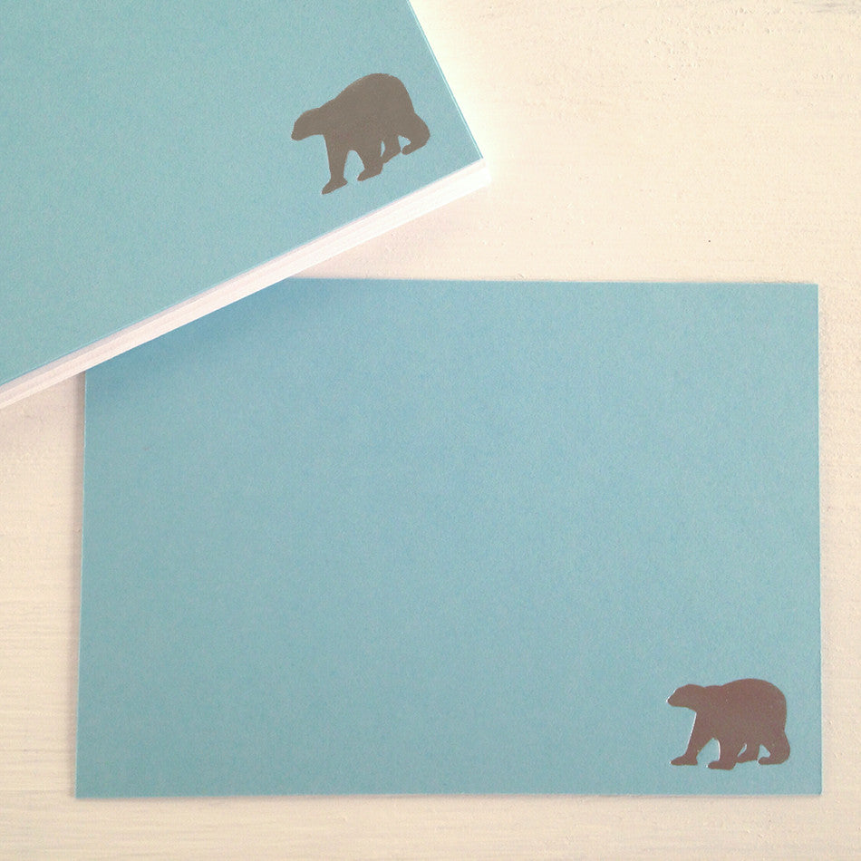 lovely set of flat glacier blue notecards with a silver polar bear hot foil stamped in the bottom corner. these cards are great to use for thank yous, invitations or a note to a loved one. keep an extra set on hand for sweet & simple gifts - they are the perfect size for stocking stuffers.