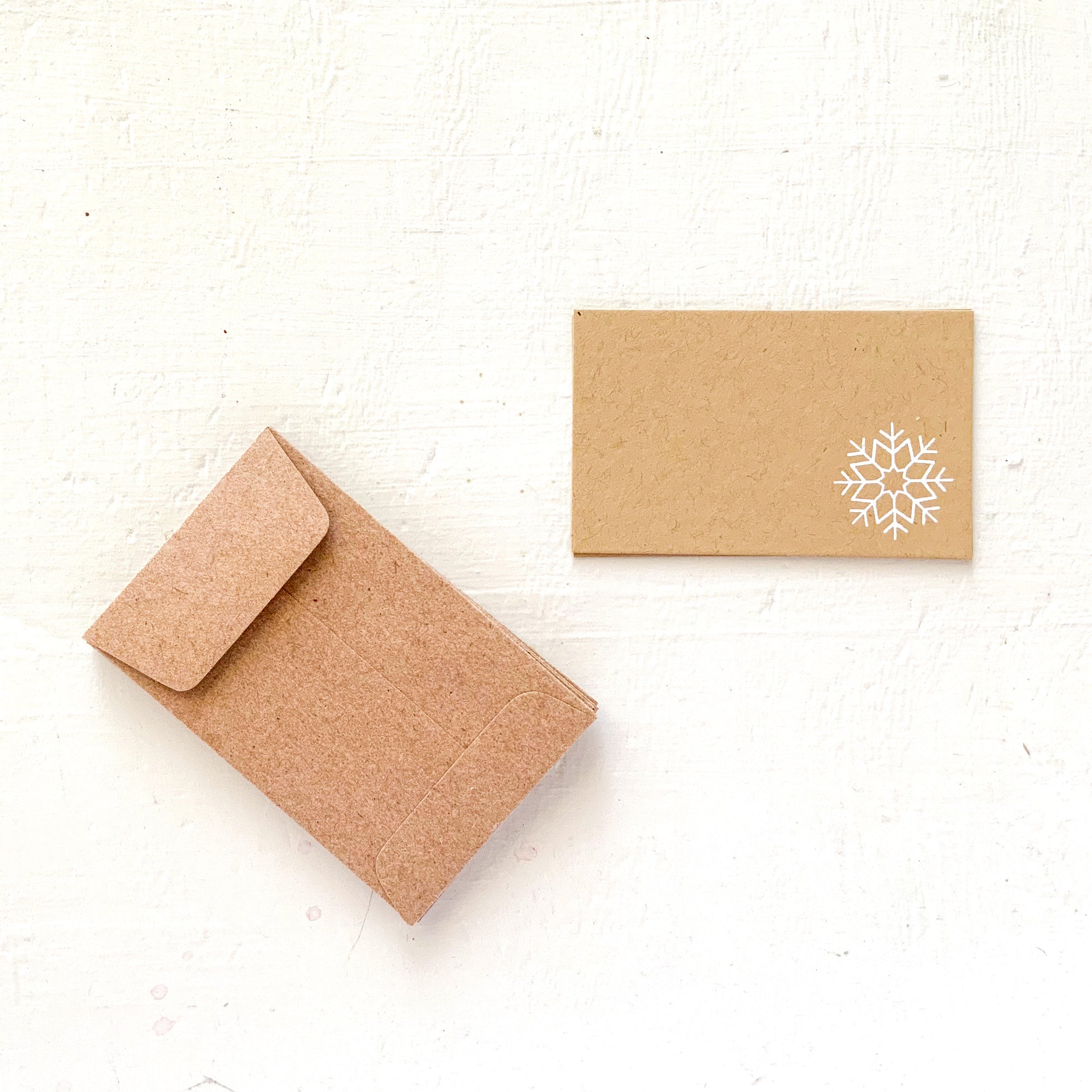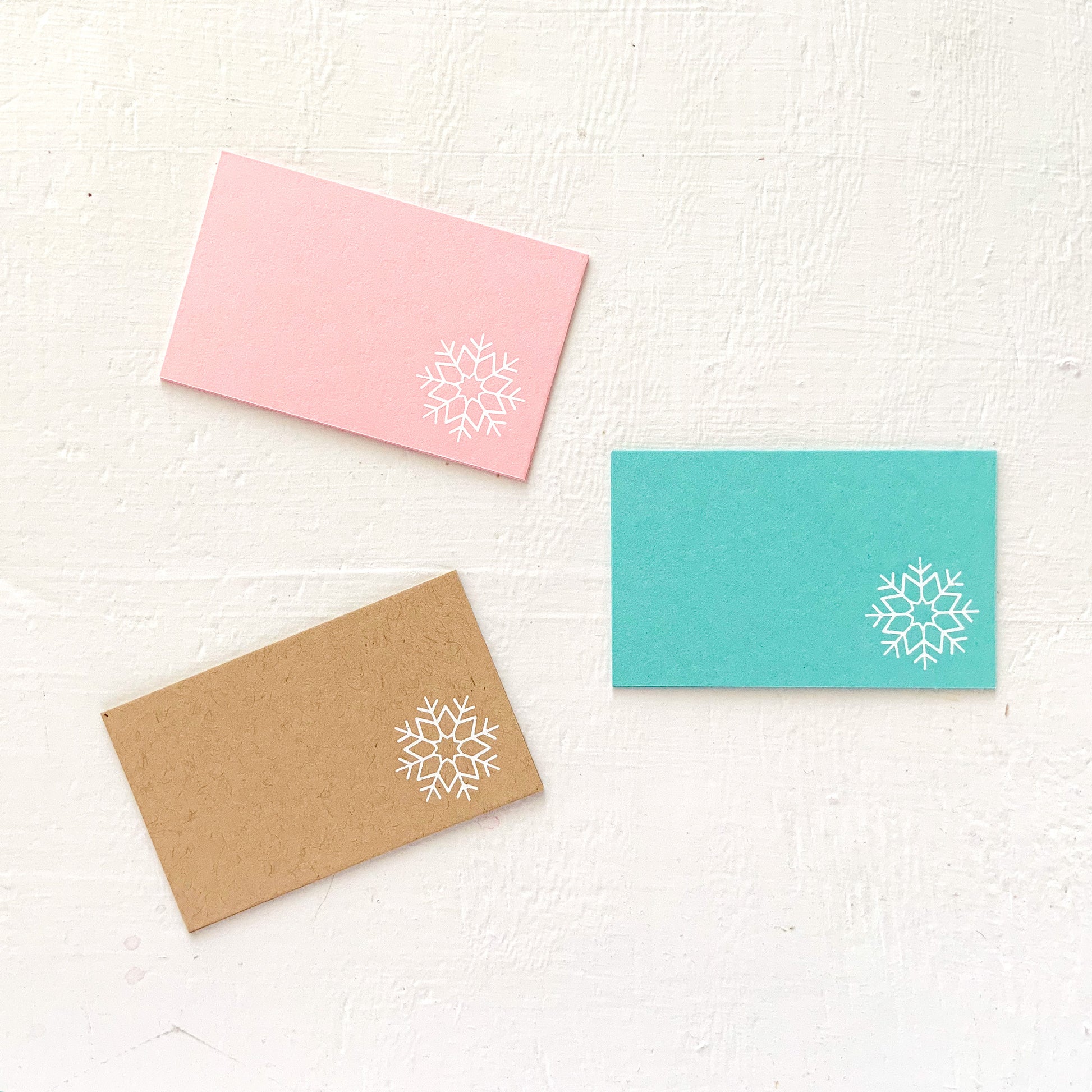 gift enclosures with a snowflake hand foil stamped in white or gold. add these miniature cards to gifts or use as tiny notes. they also work great for entertaining as place cards or buffet markers.