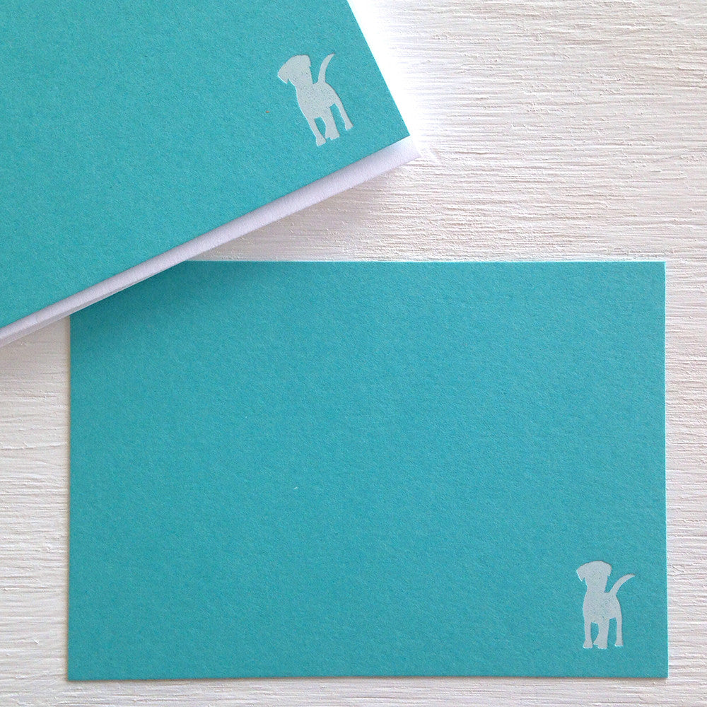 teal dog flat notecards