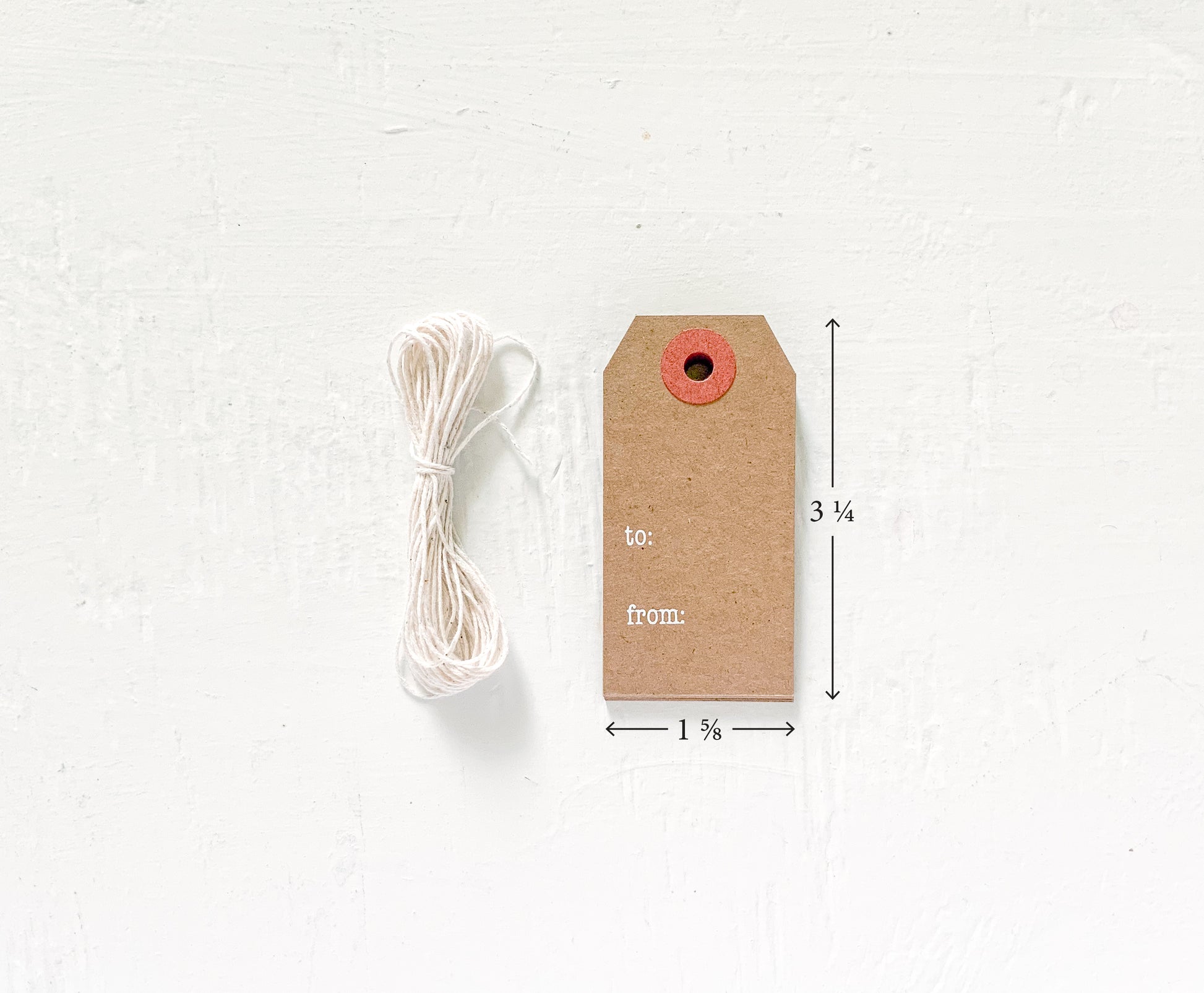 - tags come with 10 feet of natural twine (not pre-strung or cut)